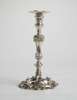 the stem of circular outline, with bold C-scrolls and foliate detail, serpentine base, with engraved crest, the removable sconce with floral detail
