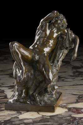 Note: The original, now in the Munich Glyptothek, was first mentioned in 1628. It was discovered in Castel Sante' Angelo during fortification work in 1624 and became the property of Cardinal Francesco Baberini. It was restored on various occasions during the 17th century by artist under Bernini instruction. Changes to the pose and finishing touches were made in 1642 and 1704. Although it was regarded as one of the most beautiful of classical statues by Cassiano dal Pozzo and Winkelmann, no small bronzes are known, until the 19th century.