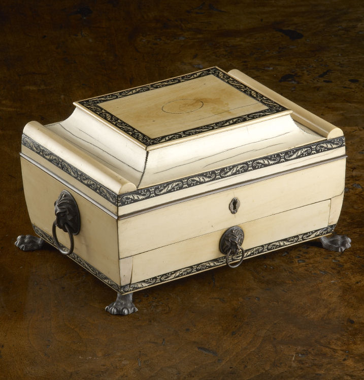 A good early 19th century Anglo-Indian ivory and ebony banded work box