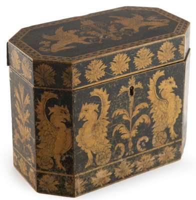 A Regency period pen work tea caddy