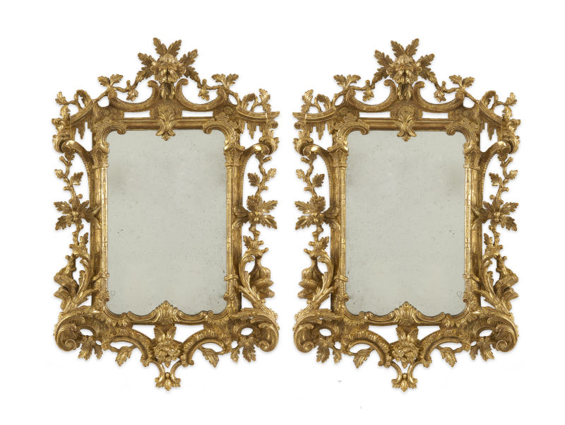 the rectangular plates within ornate openwork foliate and scroll carved frames (2)