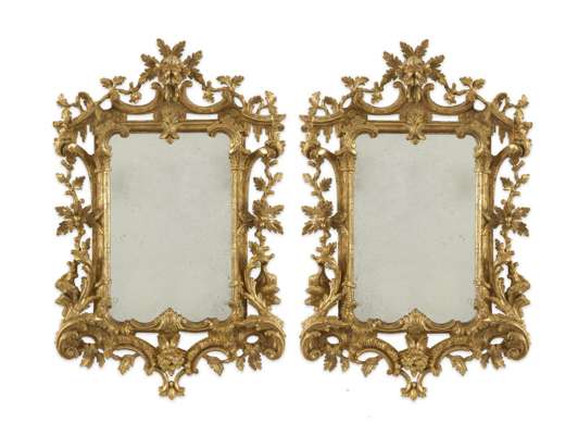 A small pair of 18th/19th century carved giltwood looking glasses