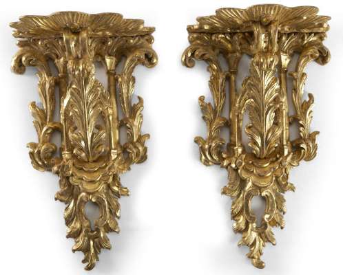 A pair of carved giltwood wall brackets
