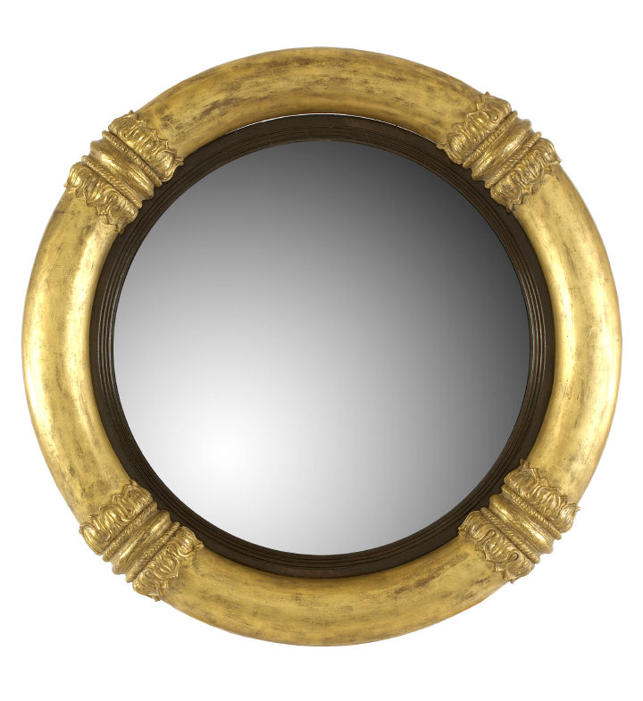the circular plate within a reeded ebonised slip, the frame decorated with lappet and rope twist high relief bands