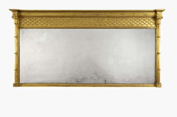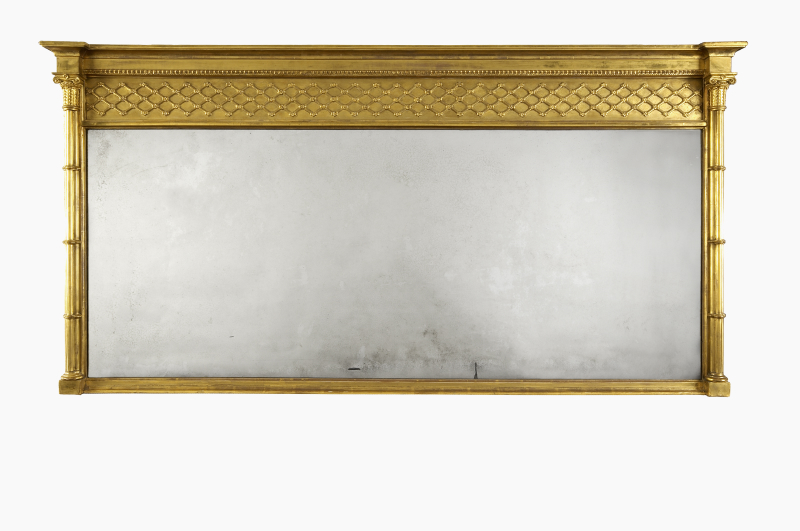 the moulded cornice above a trellis frieze and rectangular plate, flanked by cluster columns with Doric capitals