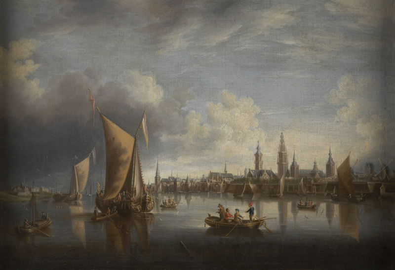 A BUSY RIVERSIDE TOWN WITH FISHING AND ROWING BOATS