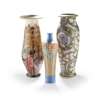 glazed stoneware, comprising a LARGE VASE impressed ROYAL DOULTON, date cypher Q, incised FCP/ 53, monogram LB, 41.5cm (16 3/8in) high; together with a FURTHER FRANCIS POPE VASE, with broad rim, impressed DOULTON LAMBETH, incised FCP/ 122, monogram RB, 40cm (15 3/4in) high; and a TAPERED FRANCIS POPE VASE, impressed DOULTON LAMBETH, incised FCP/ 64, monogram H, 30cm (11 3/4in) high