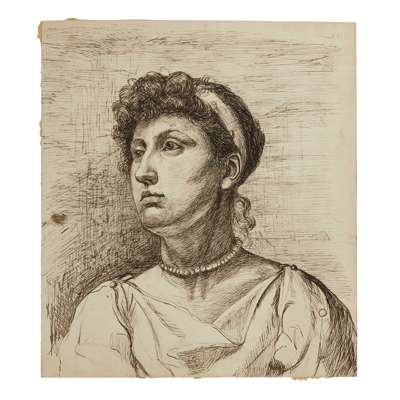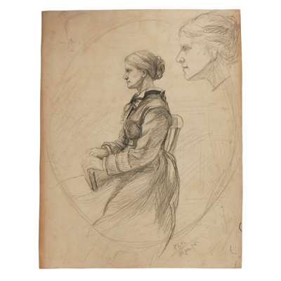 pen and ink, monogrammed and dated in pen, upper right, inscribed to reverse, 35.5cm (14in) high, 25.5cm (10in) wide; together with EIGHT FURTHER PORTRAIT STUDIES, all unframed