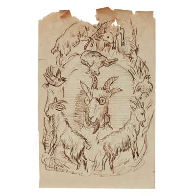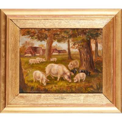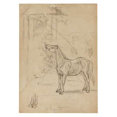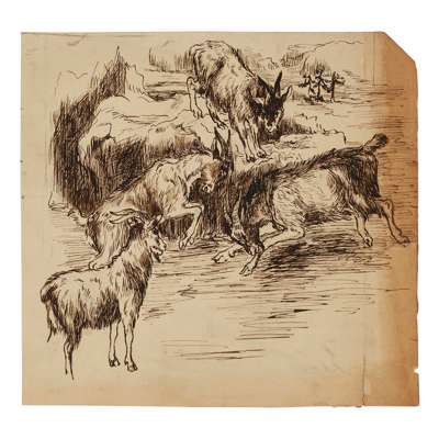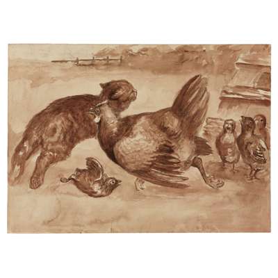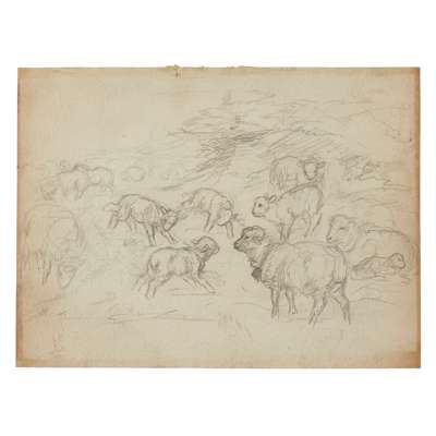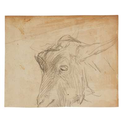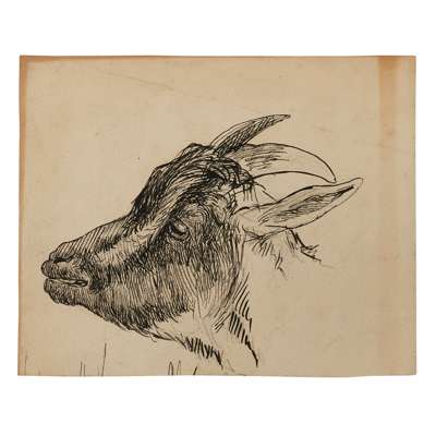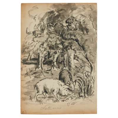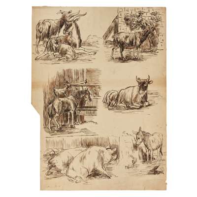 Oil on paper, 29cm (11 1/2in) high, 43cm (17in) wide; together with ELEVEN FURTHER DRAWINGS OF FARMYARD ANIMALS, in pen, ink and oil, all unframed