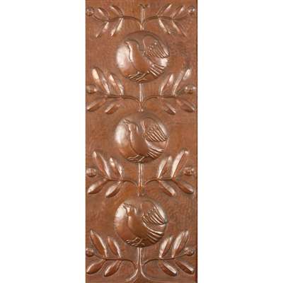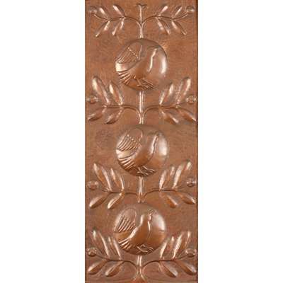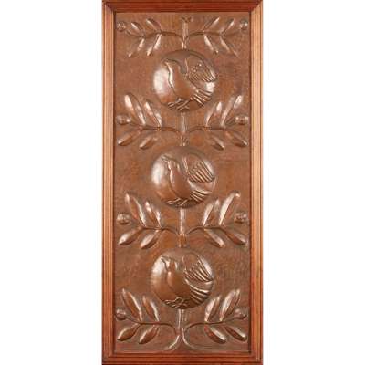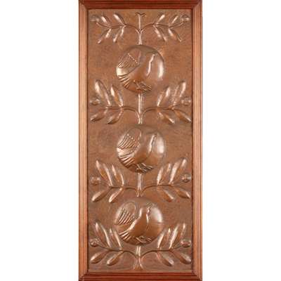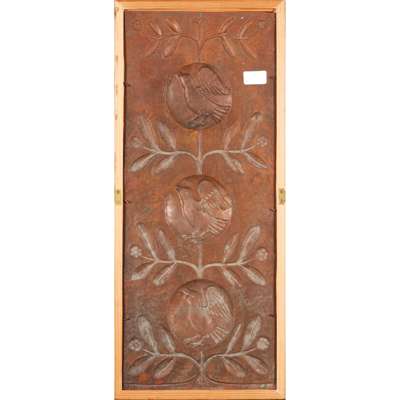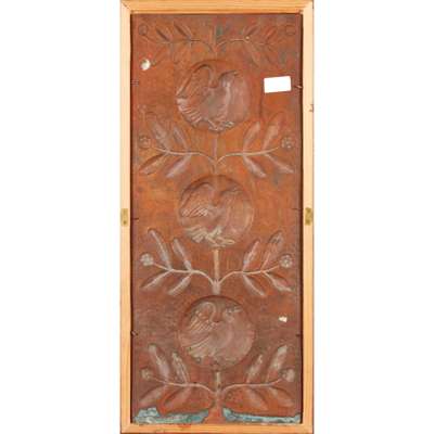 patinated copper, repoussé decorated, later framed, incised J.P.