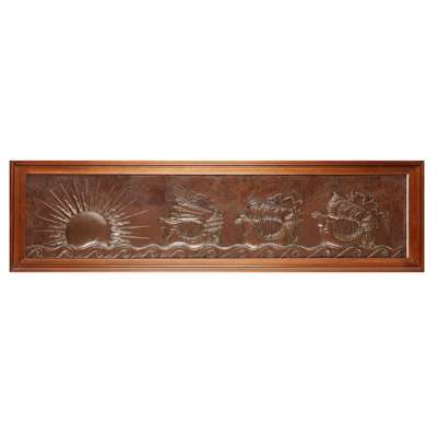 patinated copper, repoussé decorated, later framed, incised J. PEARSON 1898