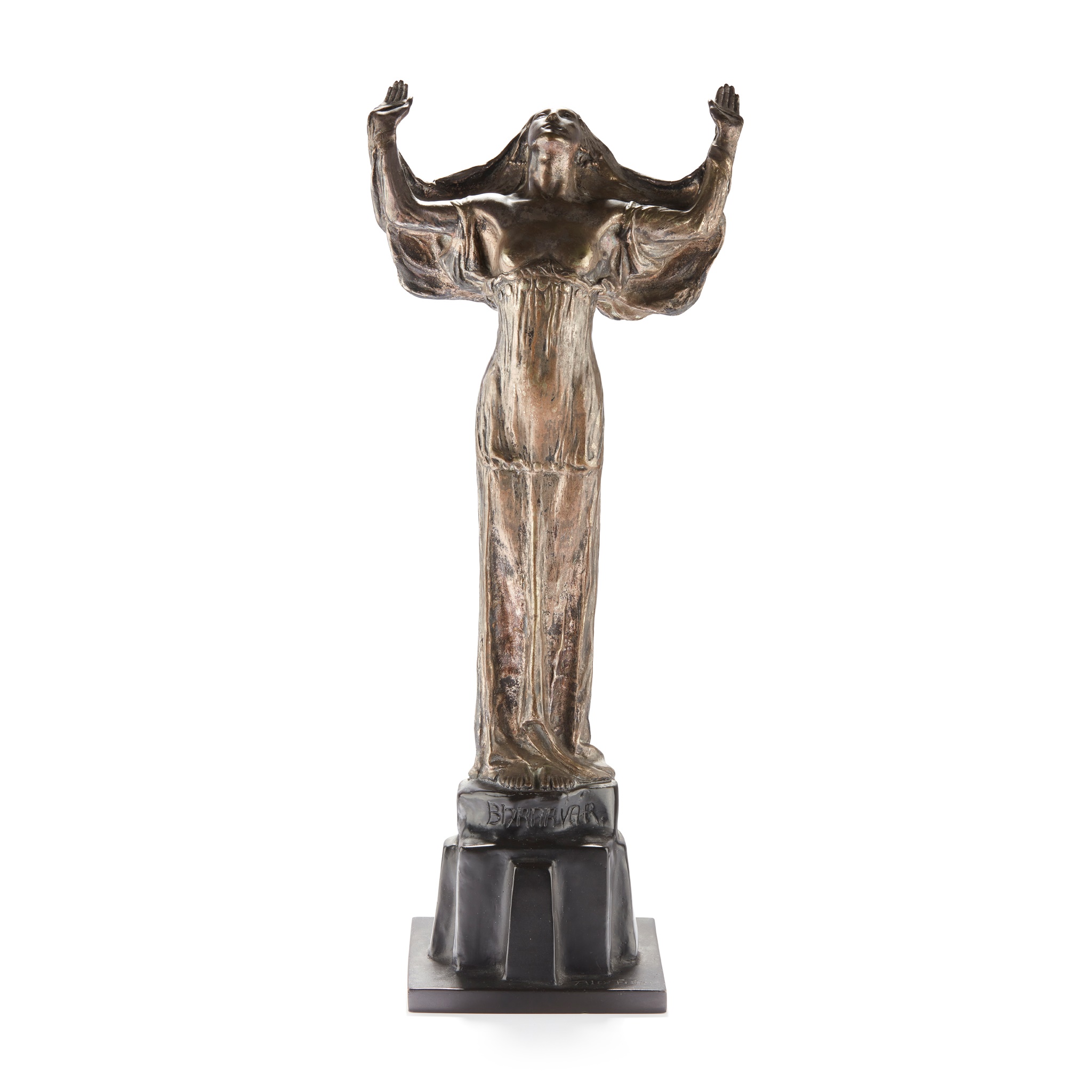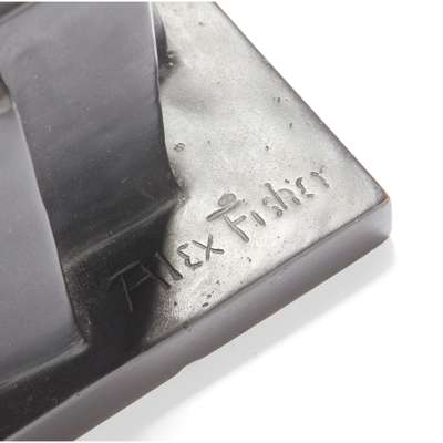 silvered metal, black patinated bronze base, signed ALEX FISHER/ BHANAVAR