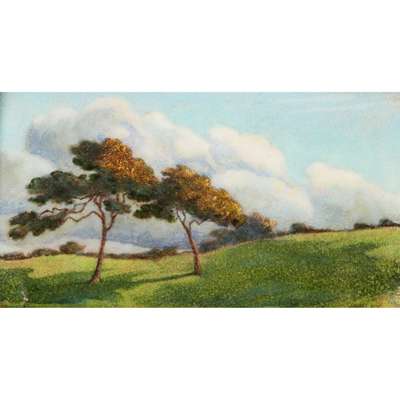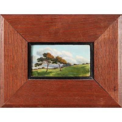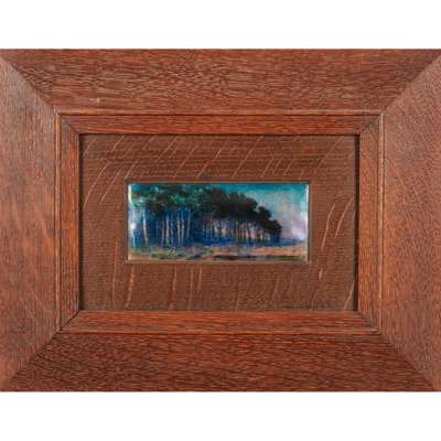 enamel, later framed, both signed VARLEY, one with paper label, dated 1905; together with ANOTHER PLAQUE