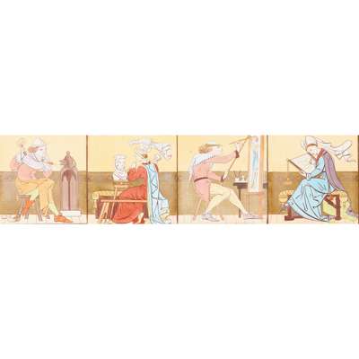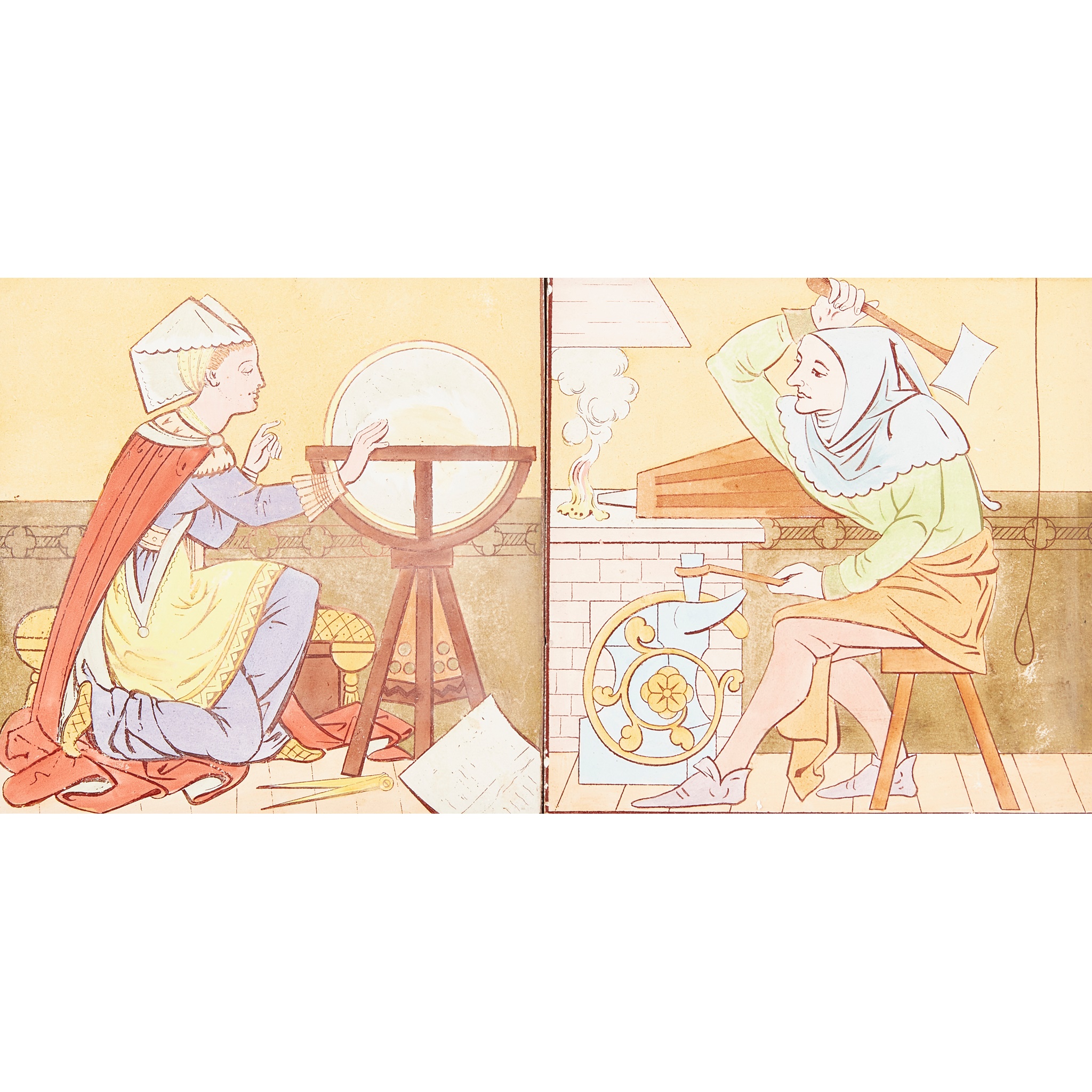 GROUPS OF SEVEN MEDIEVAL PURSUITS TILES, CIRCA 1880