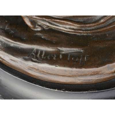 patinated bronze, signed in the cast ALBERT TOFT, ebonised wood base