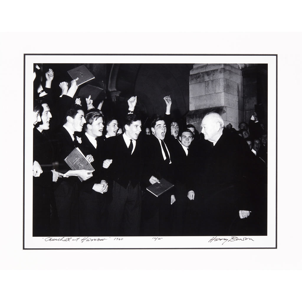 This photograph was taken on Churchill's last visit to his old school. The students added a verse to the school song and sang, "And Churchill's name shall win acclaim through each new generation."