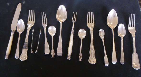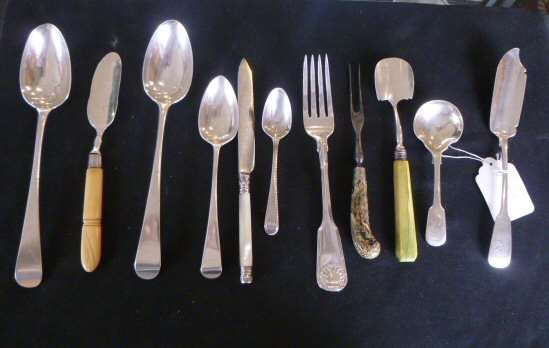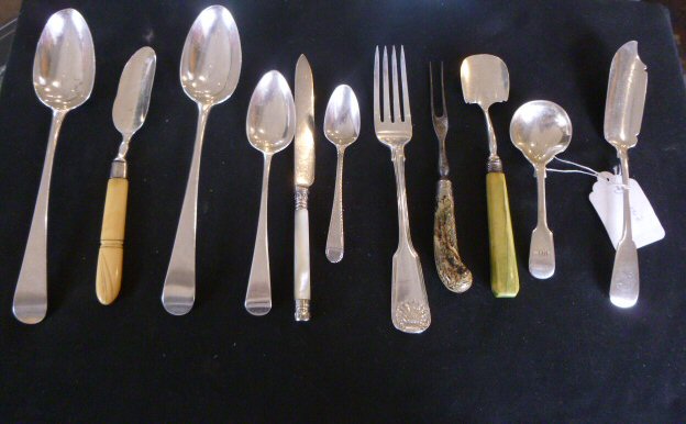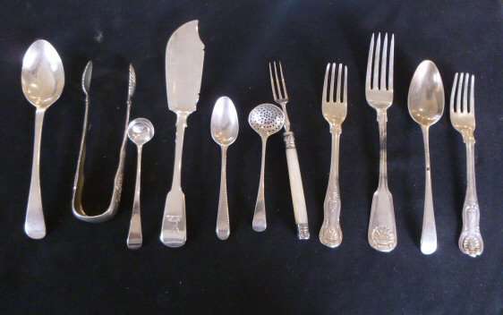 to include various fish knives and forks, table spoons, forks and other small silver and plated wares (qty)