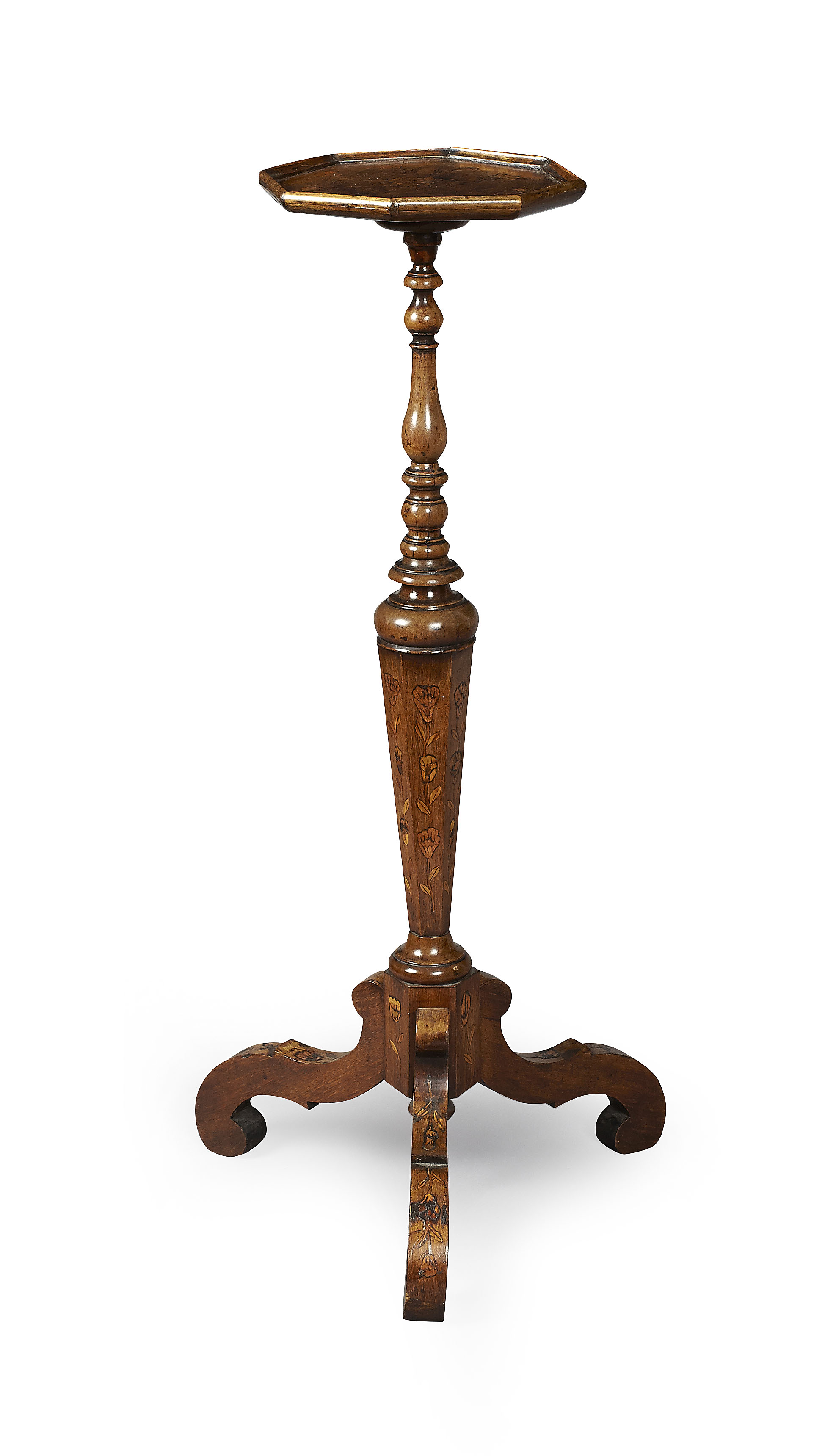 DUTCH WALNUT AND FLORAL MARQUETRY CANDLE STAND