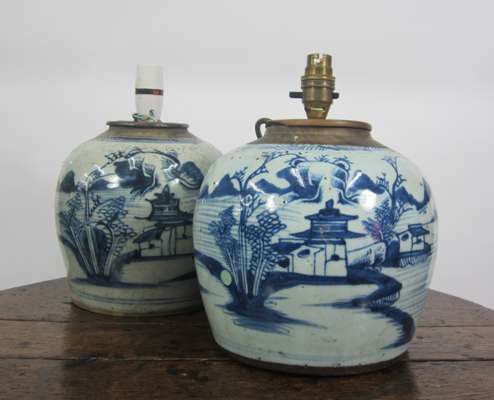 converted to lamps, of globular form, decorated with fishing hamlets and mountains (4)