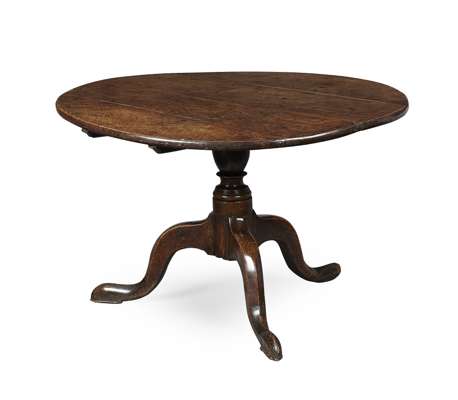 the oval top on a shortened baluster column, raised on a cabriole tripod base, ending in pointed pad feet