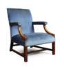 GEORGE III MAHOGANY AND UPHOLSTERED GAINSBOROUGH CHAIR