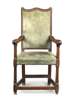 QUEEN ANNE UPHOLSTERED OAK ARMCHAIR