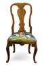 with a vasiform splat over a drop-in seat, raised on cabriole legs and pad feet; upholstered in modern needlework depicting Charles II