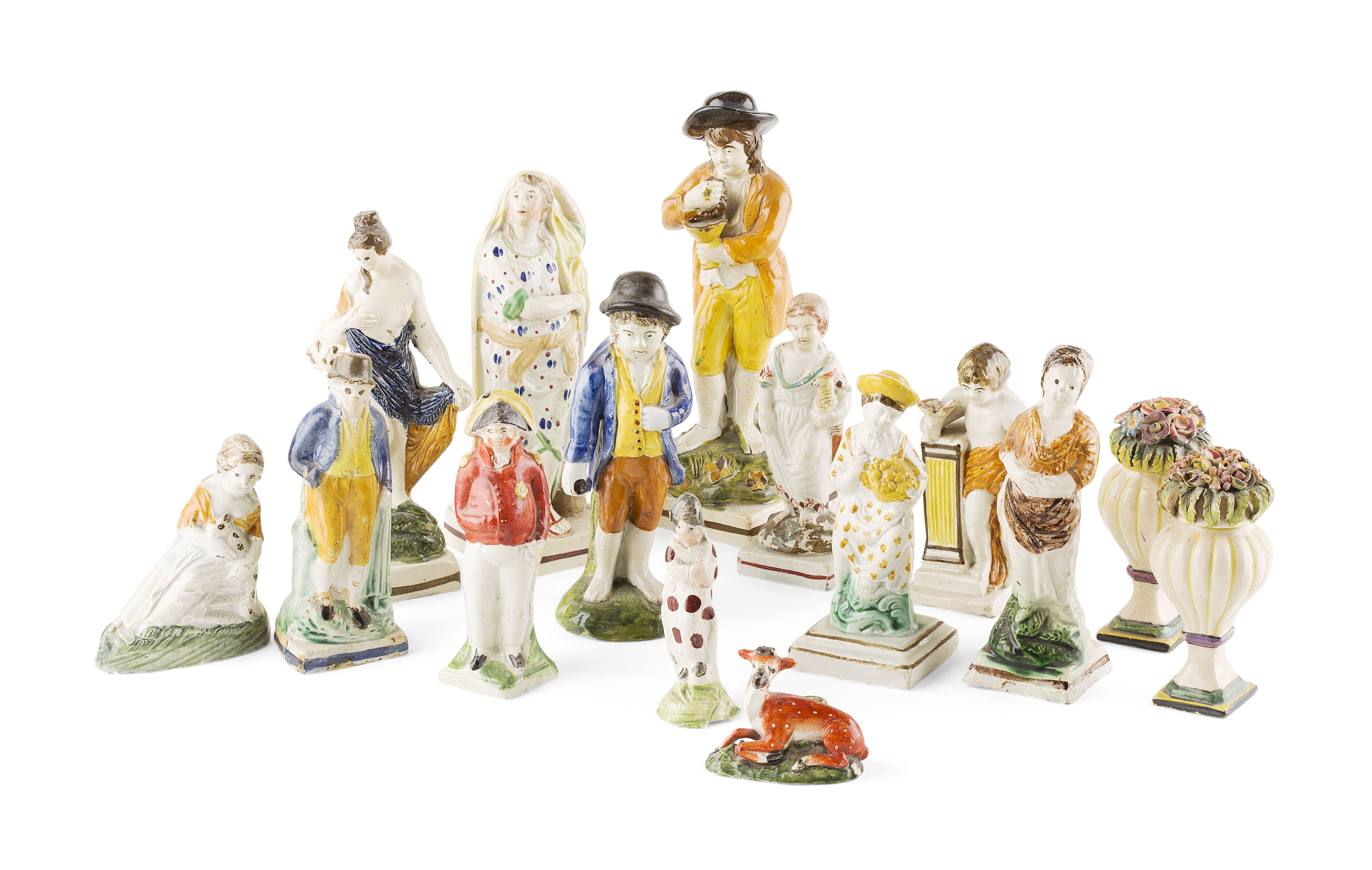 GROUP OF STAFFORDSHIRE PEARLWARE AND PRATTWARE FIGURES
