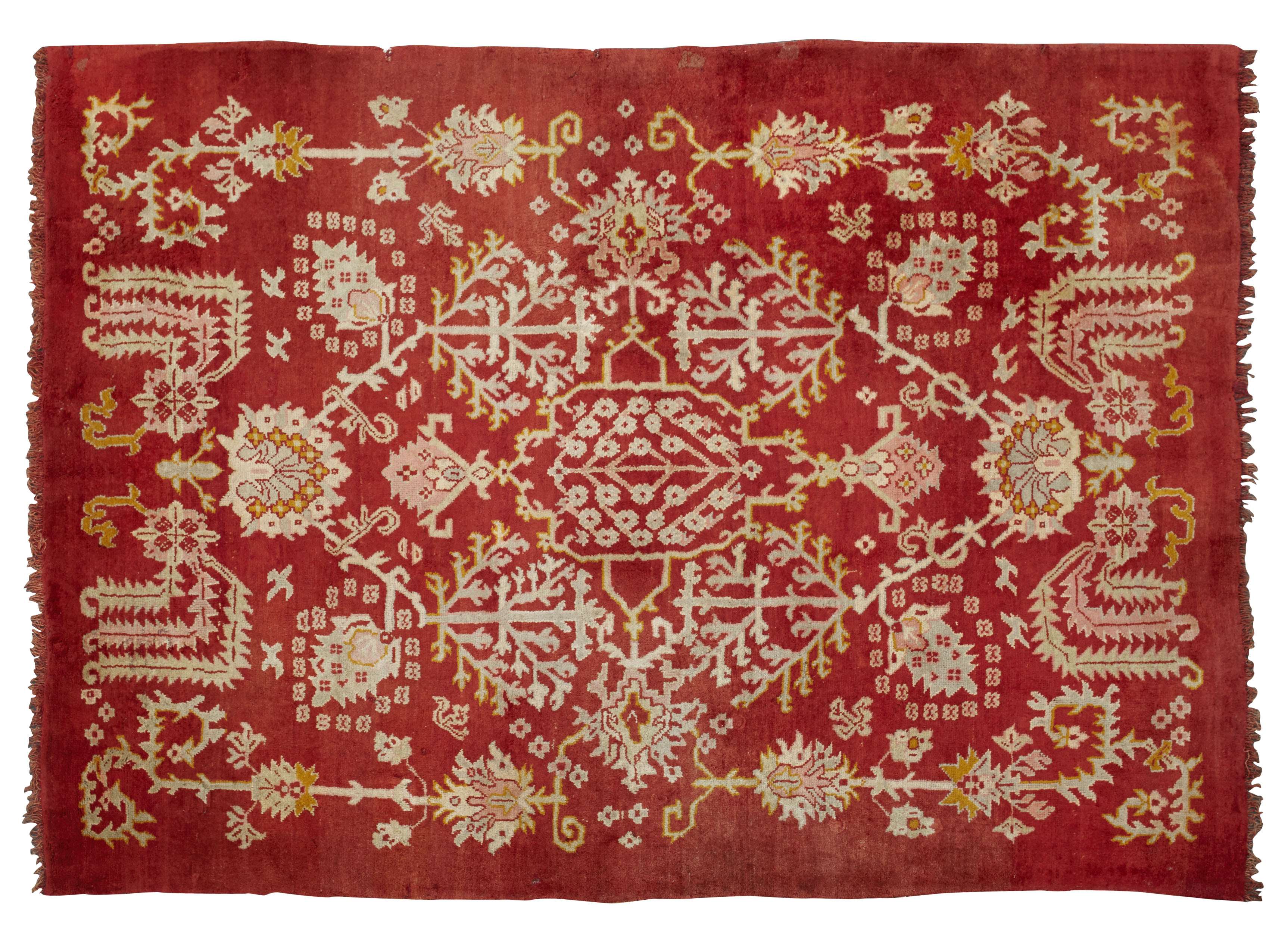 the red field with stylised foliate and palmette lozenge, flanked by similar motifs, no border