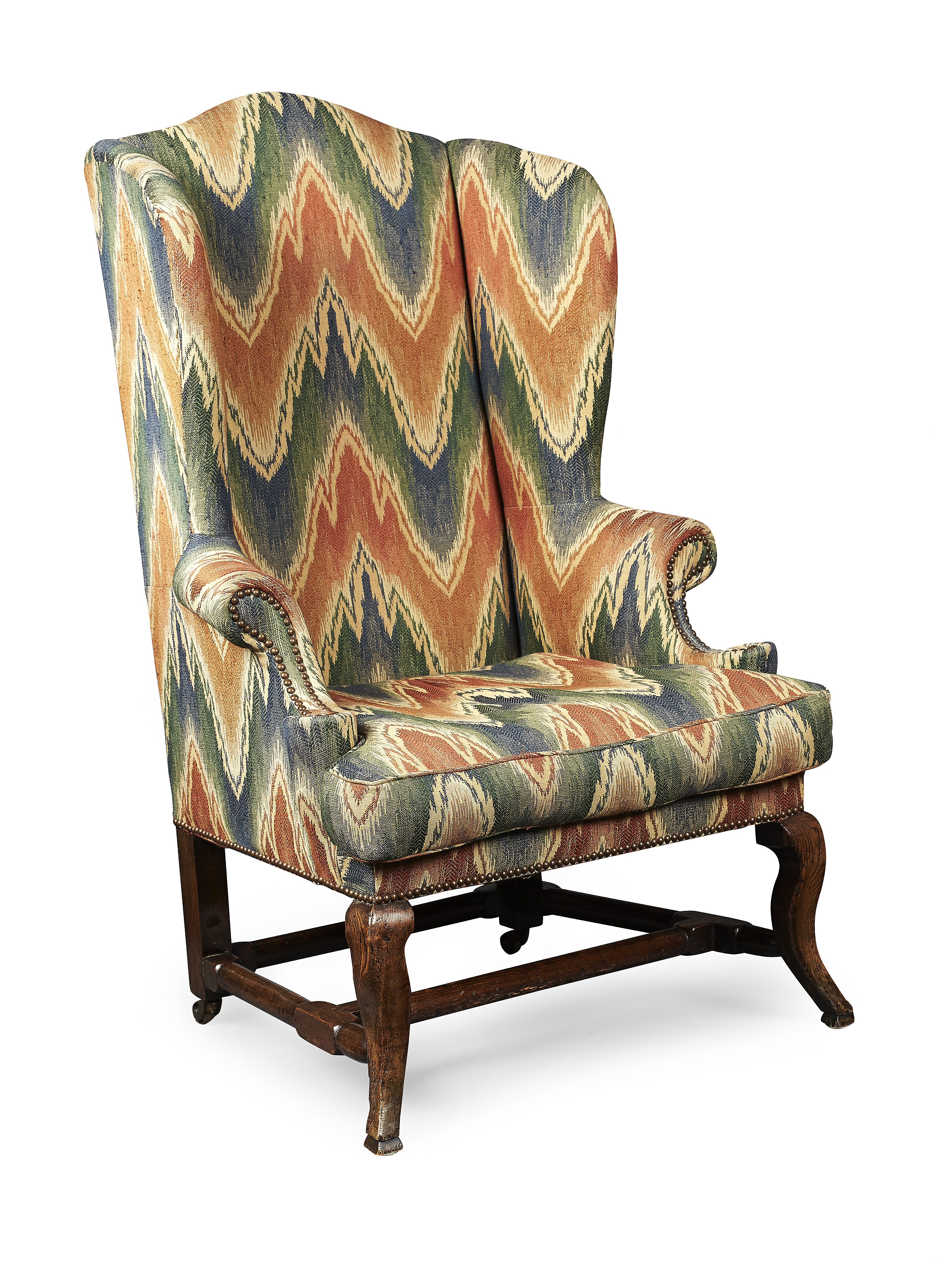 SCOTTISH GEORGE III ELM UPHOLSTERED WING ARMCHAIR