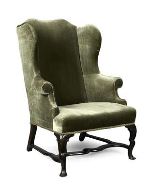 QUEEN ANNE UPHOLSTERED WING ARMCHAIR