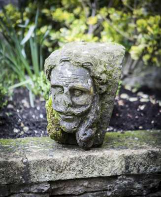 CARVED STONE CORBEL IN THE FORM OF A MAN'S HEAD