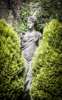 the draped standing figure with her head turned to the right