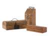 comprising a small gilt embossed leather cutlery box converted to a stationery box, 22cm high; a leather embossed dome top casket, 27cm long; and a fruitwood box with pique decoration, 22.5cm long (3)