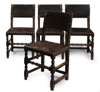 SET OF FOUR FLEMISH STYLE OAK AND LEATHER BACK STOOLS