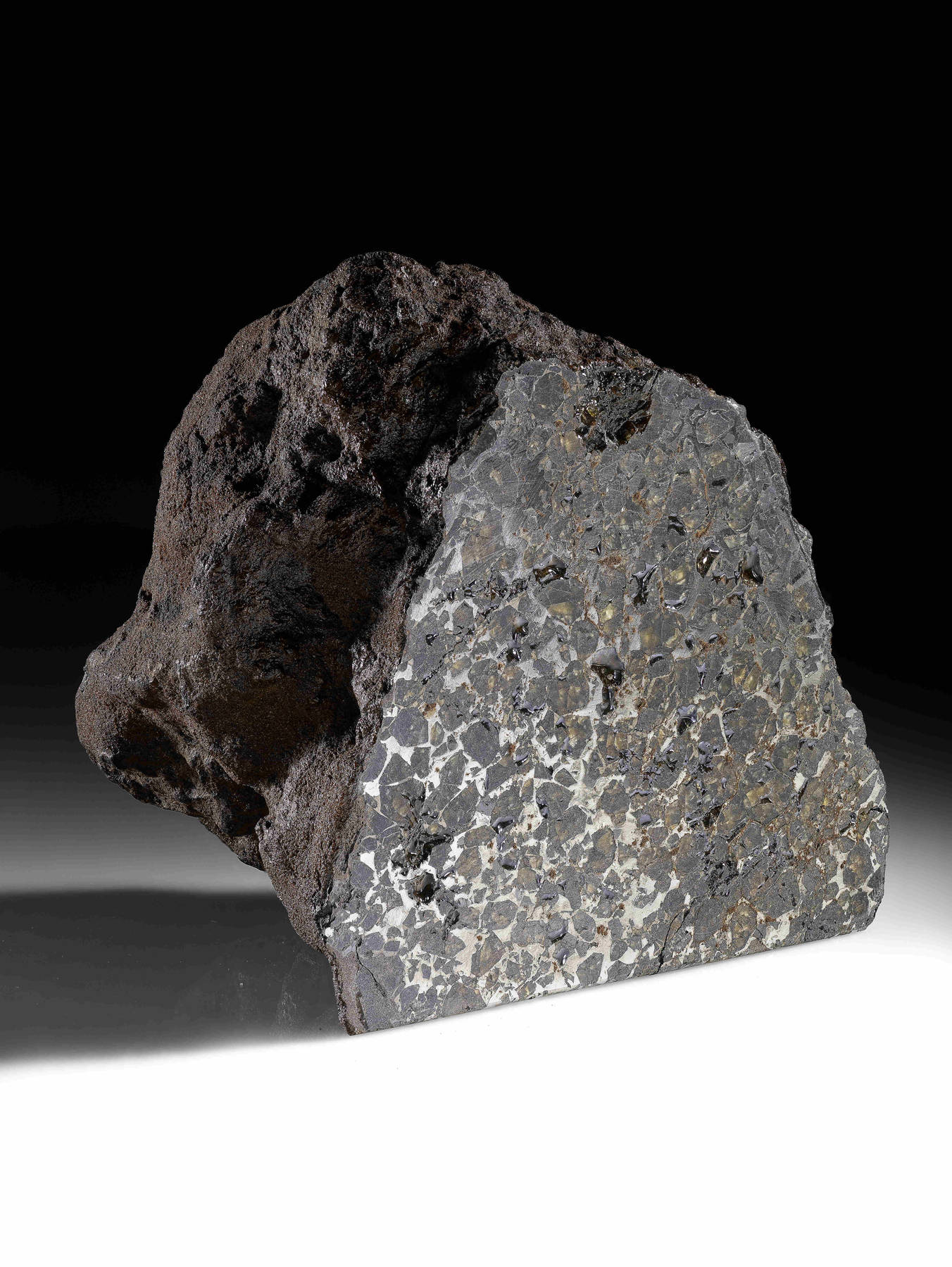 Pallasites are rare, accounting for only around 1% of all meteorites. They are now considered to be specimens of the region lying between the stony mantle and the metallic core of large asteroids. Cut and polished Brahin sections reveal transparent olivine crystals surrounded by a web of iron.