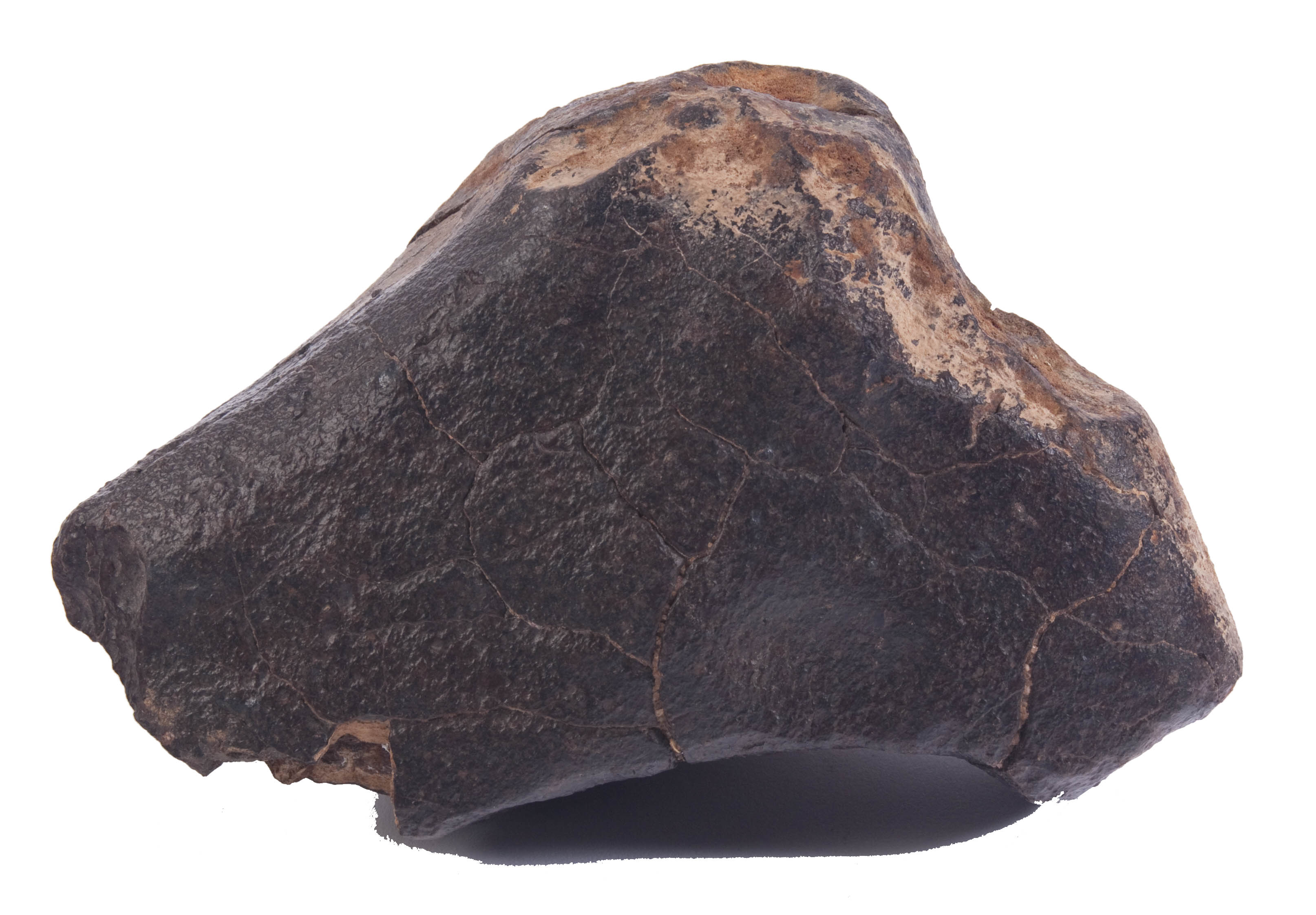 Stony meteorite, collected from the hot deserts of Morocco by wandering nomads. With such collecting techniques, the exact find location and total known weight of the meteorites in any particular strewnfield is unknown.