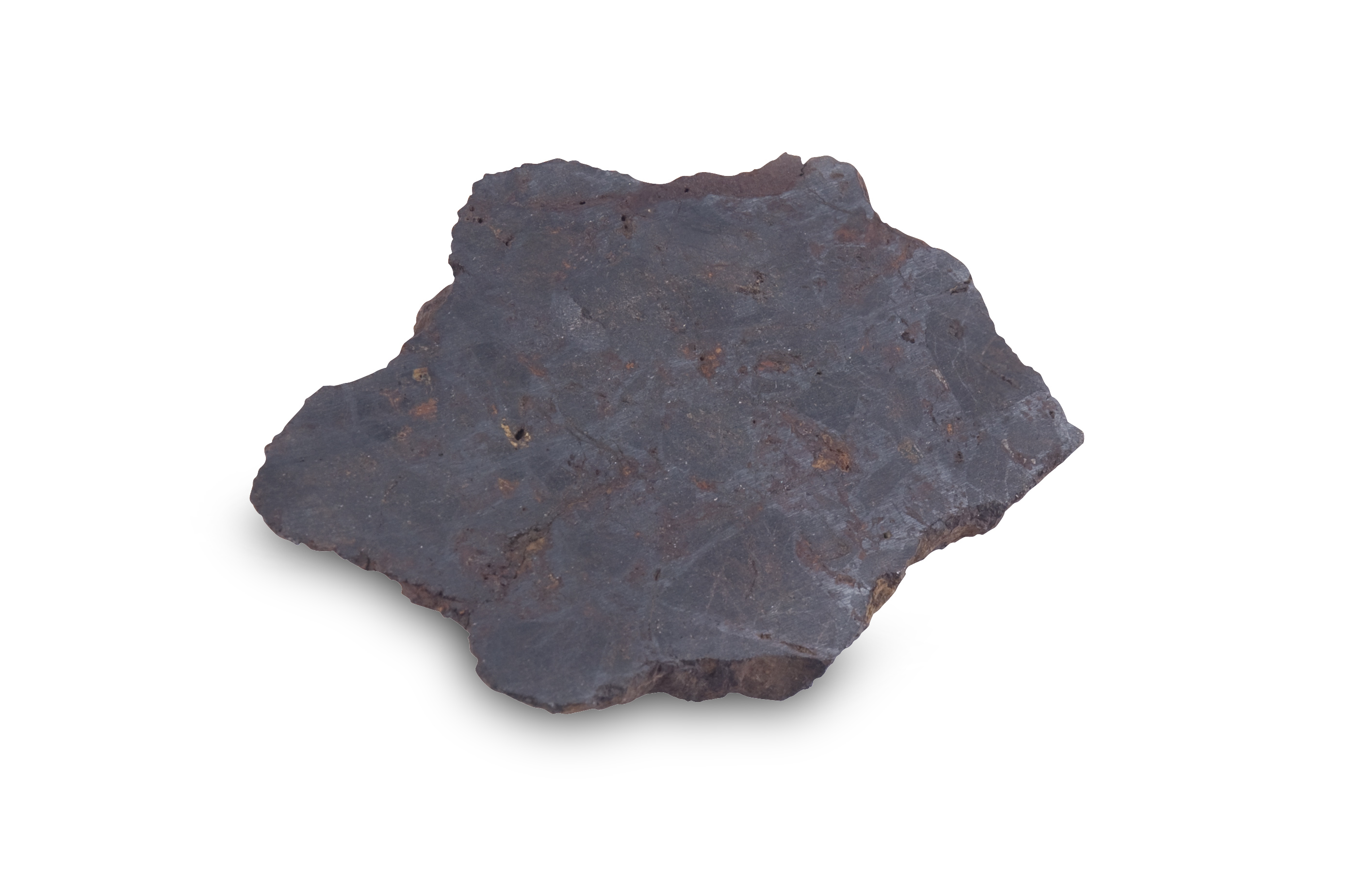 Huckitta is a stony iron meteorite called a pallasite - originally part of the core-mantle boundary layer within an asteroid. This meteorite has had a very long Earth age, resulting in all of the metallic iron transforming into its mineral hematite. Cut sections reveal many dark angular olivine crystals set in a grey hematite matrix