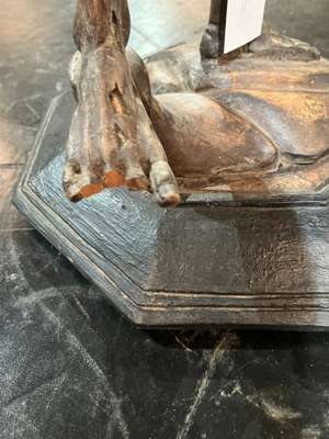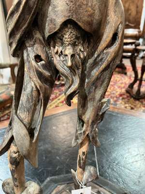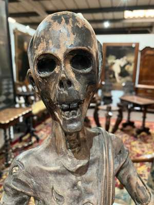 The skeletal figure semi clad in flesh and rags, standing on a rocky outcrop, set within an ebonised octagonal base