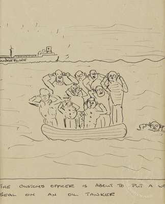 16cm x 16cm (6.5in x 6.5in) and CUSTOMS OFFICER ABOUT TO PUT A SEAL ON AN OIL TANKER (2)