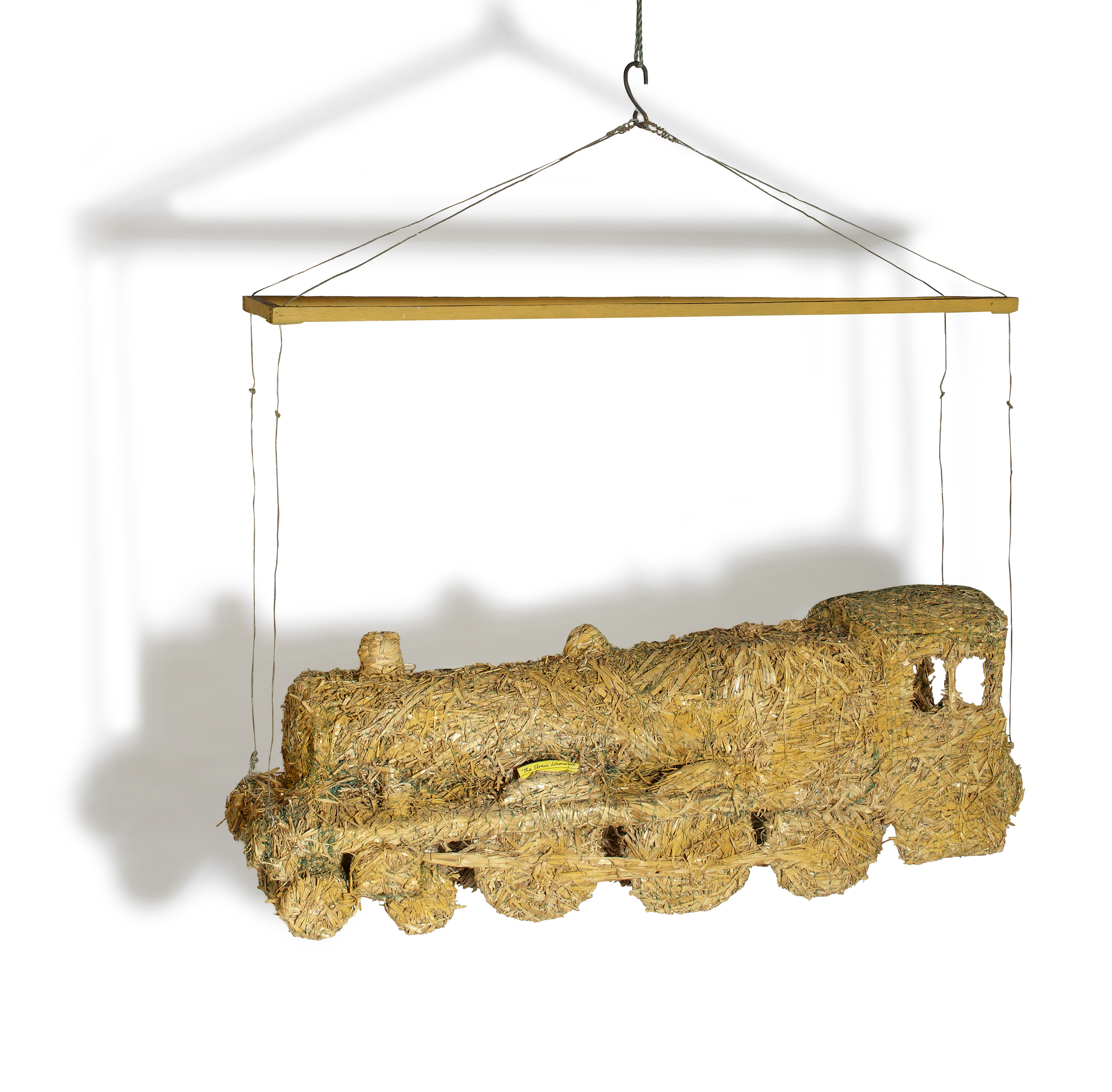 While the original Straw Locomotive survives only in images and memory, this second smaller version, a metre-long replica of the original, was commissioned on behalf of the City of Glasgow to form part of The Big Model, the highly imaginative centrepiece of Glasgow's 1994 bid for the title UK City of Architecture and Design 1999. George Wyllie, hauling the Straw Locomotive Mark 2 onto the model crane (guided by Professor Andy MacMillan), gave the Glasgow bid substantial television coverage at the time.