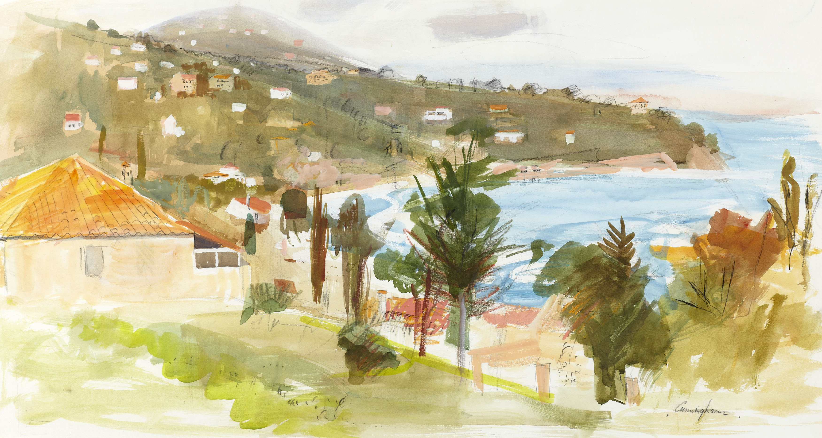 Signed and inscribed verso, pencil and watercolour