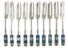 SET OF 10 SILVER AND ENAMEL PASTRY FORKS, 1926