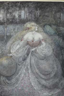 Frances and her sister Margaret Macdonald each exhibited a watercolour depicting a scene from the tale of the frog prince at the RSW in 1898. Each was unsold and both paintings were shown in the 8th Exhibition of the Vienna Secession in late 1900 in the room designed by Mackintosh as a showcase for the work of The Four. Helland and Robertson have both commented on the themes and possible feminist undertones in Frances's choice of the cruel moment in the story when the princess, after the frog has retrieved the golden ball for her, runs off with it, reneging on her promise to share her life with him, leaving the distraught frog prince behind.