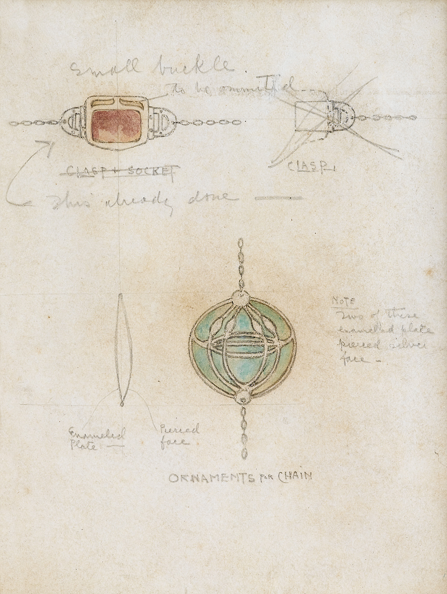 DESIGN FOR CLASP AND ORNAMENT, CIRCA 1900-10