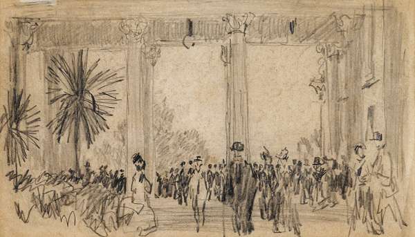 signed lower left MUIRHEAD BONE, pencil on paper, 13 x 17cm (5 x 6½in); and another similar by the same hand, THE PIAZZA 13 x 22cm (5 x 8¾in), mounted within one frame (2)