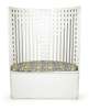 with loose cushion and hinged seat, the curved back with latticed construction in the form of a stylised tree