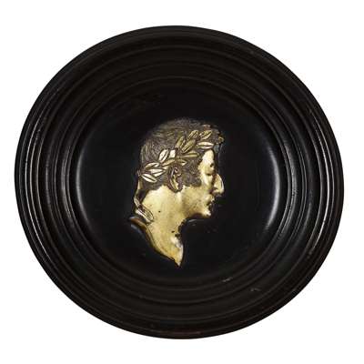 PAIR OF GILT METAL PLAQUES OF NAPOLEON AND WELLINGTON