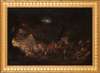 Note: The painting shows the encampment of the British army at the position of Mont St Jean on the evening of 17th June. Prominent features include the small cottage where the 1st battalion 95th rifles had made their HQ and looking along the ridge to the right of the painting a line of campfires showing the extent of the allied line. The painting features a number of vignettes including several highlanders butchering an animal. Regiments are quite distinctive and the artist has taken trouble to identify them by their uniforms. Among the most prominent are the Black Watch 42nd Foot and the 2nd Royal North British Dragoons, the Scots Greys. English line infantry are also present, along with light infantry with their distinctive green plumes. There is also an artilleryman visible to the right of the picture in blue and beyond him mounted a man of the Royal Horse Artillery. In the centre with the Greys, it is possible to make out other dragoon regiments in helmets, notably the Inniskillings. Officers are shown in discussion and in the centre a small party including one blue-coated staff officer, who may be intended to represent Wellington.