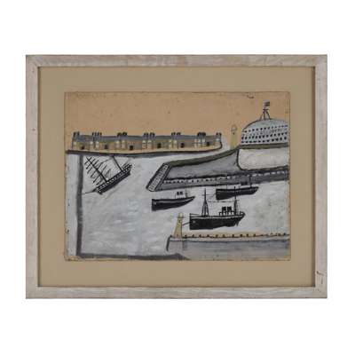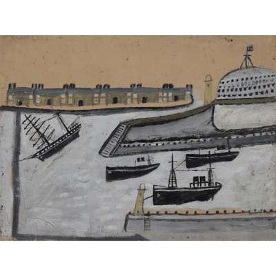 Published with title 'Portsmouth and the Victory' Nicholson, Ben (1950), (Bournemouth Arts Club Presents a Retrospective Exhibition of) Paintings by Alfred Wallis, Sydenham & Co. Ltd, Bournemouth, cat. no. 17.